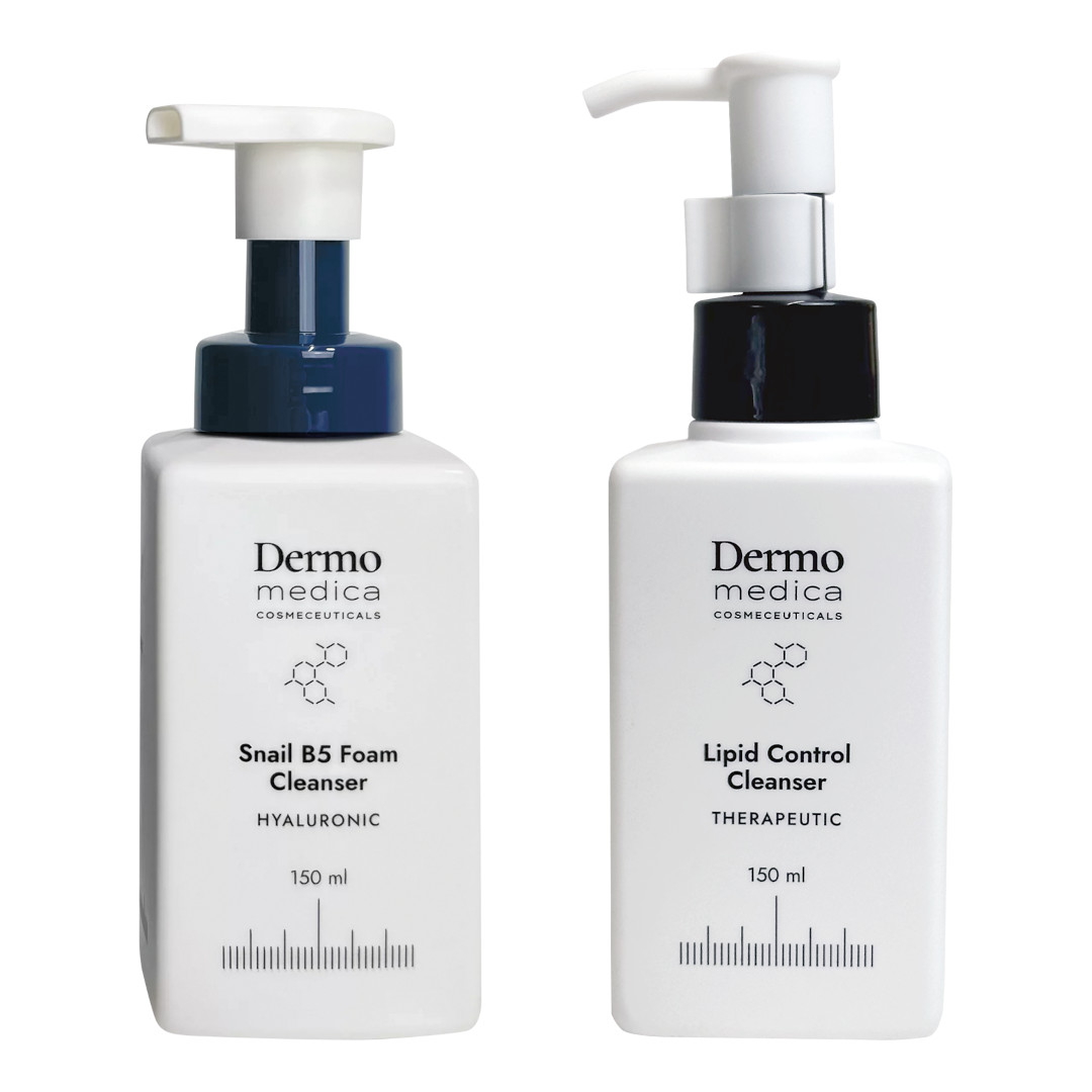 Dermomedica Zestaw Lipid Control Cleanser 150ml i Snail Foam Cleanser 150ml Olejek myjący z witaminą E i olejkiem lawendowym + Pianka myjąca z ekstraktem ze śluzu ślimaka